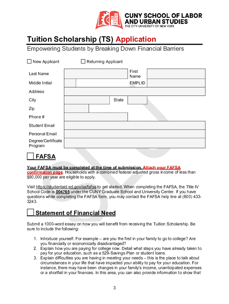 Tuition Scholarship (TS)Empowering Students by Breaking Down Financial Barriers The Tuition Scholarship (TS) was created to help students manage their financial lives. It is intended to foster effective