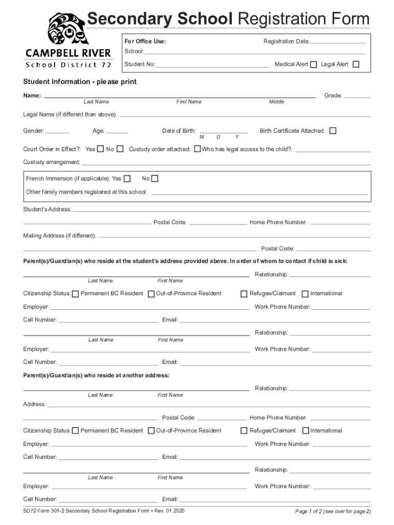 Secondary School Registration Form is not the form you're looking for?Search for another form here.