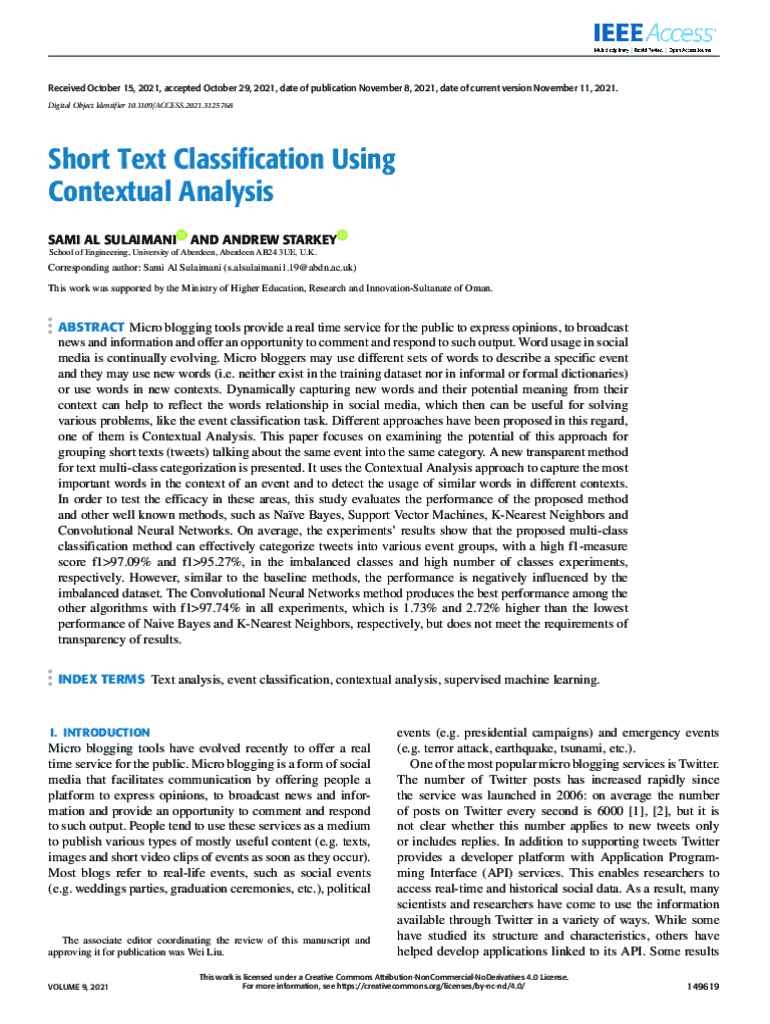 Received October 15, 2021, accepted October 29, 2021, date of publication November 8, 2021, date of current version November 11, 2021. Digital Object Identifier 10.1109/ACCESS.2021.3125768Short Text