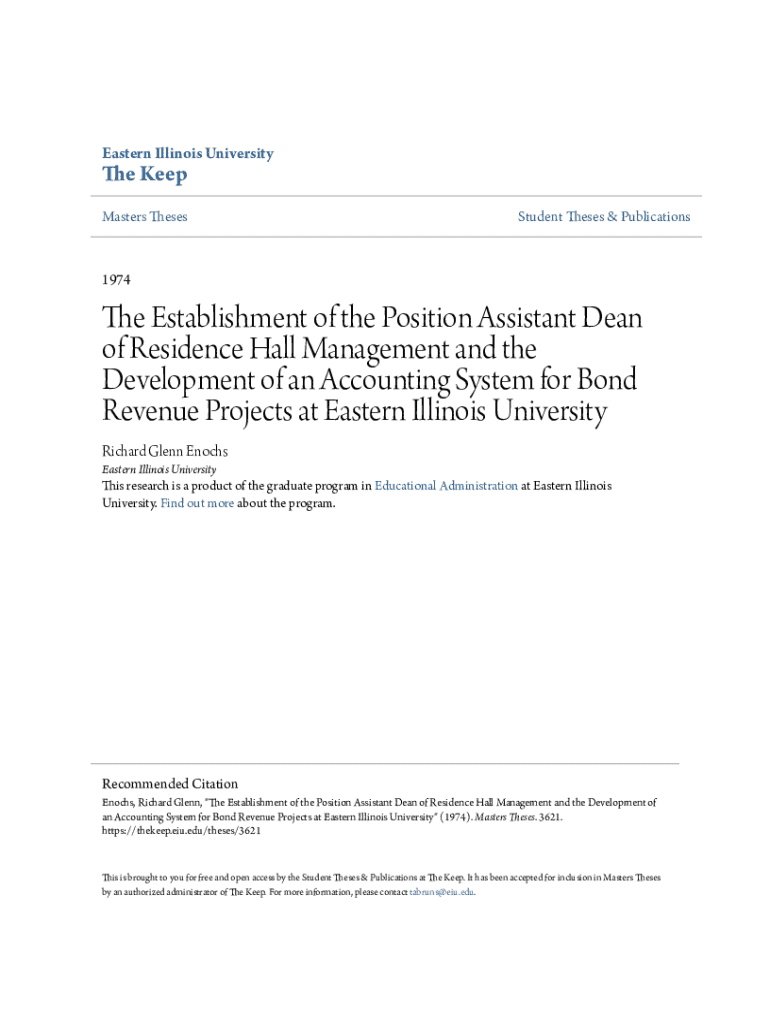 Eastern Illinois University Keep Masters ThesesStudent Theses & Publications1974The Establishment of the Position Assistant Dean of Residence Hall Management and the Development of an Accounting System