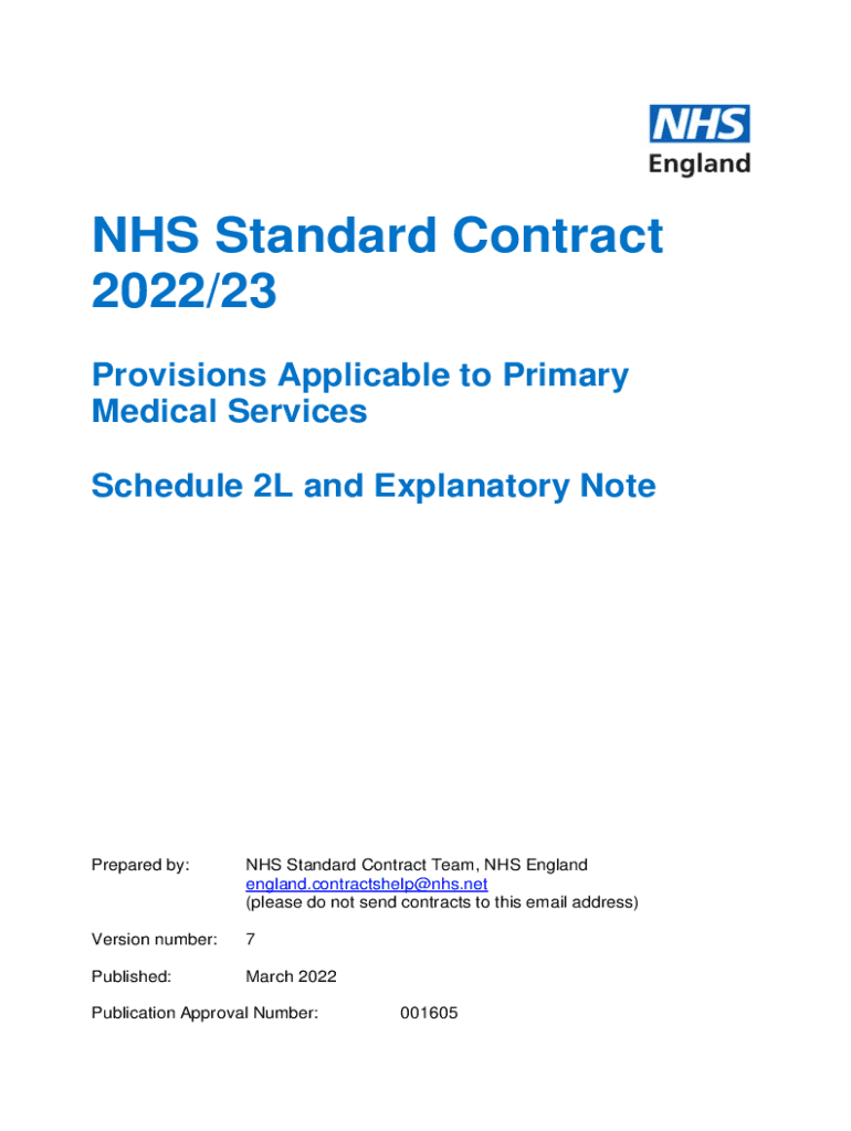 NHS Standard Contract 2022/23 Provisions Applicable to Primary Medical Services Schedule 2L and Explanatory Preprepared by:NHS Standard Contract Team, NHS England england.contractshelp@nhs.net (please