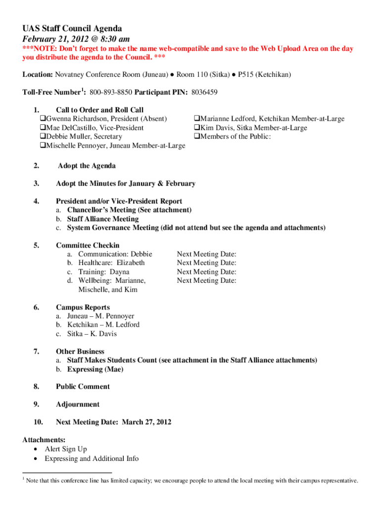 Get the free UAS Staff Council Agenda - the University of Alaska Southeast - uas alaska