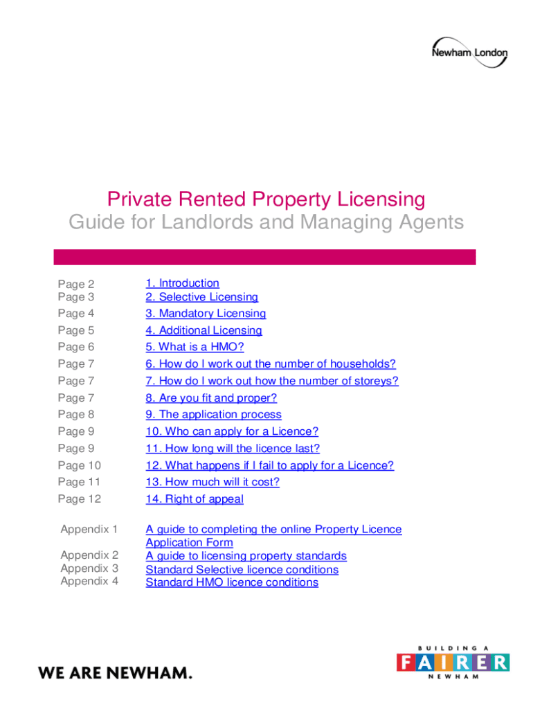 Private Rented Property Licensing Guide for Landlords and Managing Agents Page 2-Page 31. Introduction 2. Selective Licensing Page 43. Mandatory Licensing Page 54. Additional Licensing Page 65. What