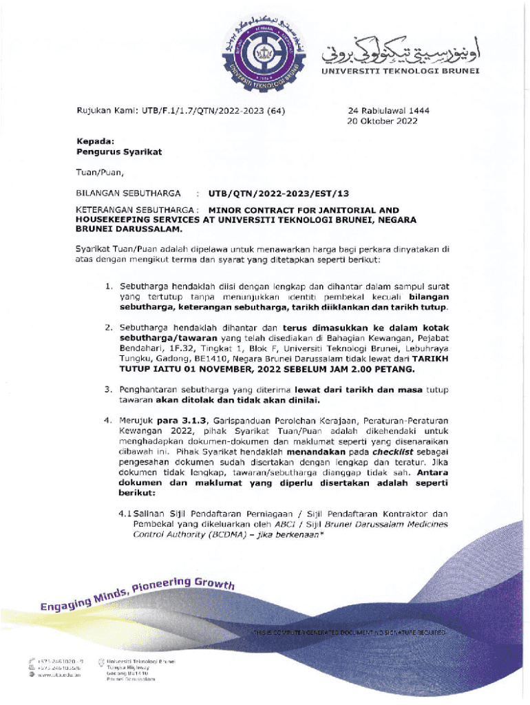 NEAR BRUNEI DARUSSALAMTARIKH TUTU / CLOSING DATE: