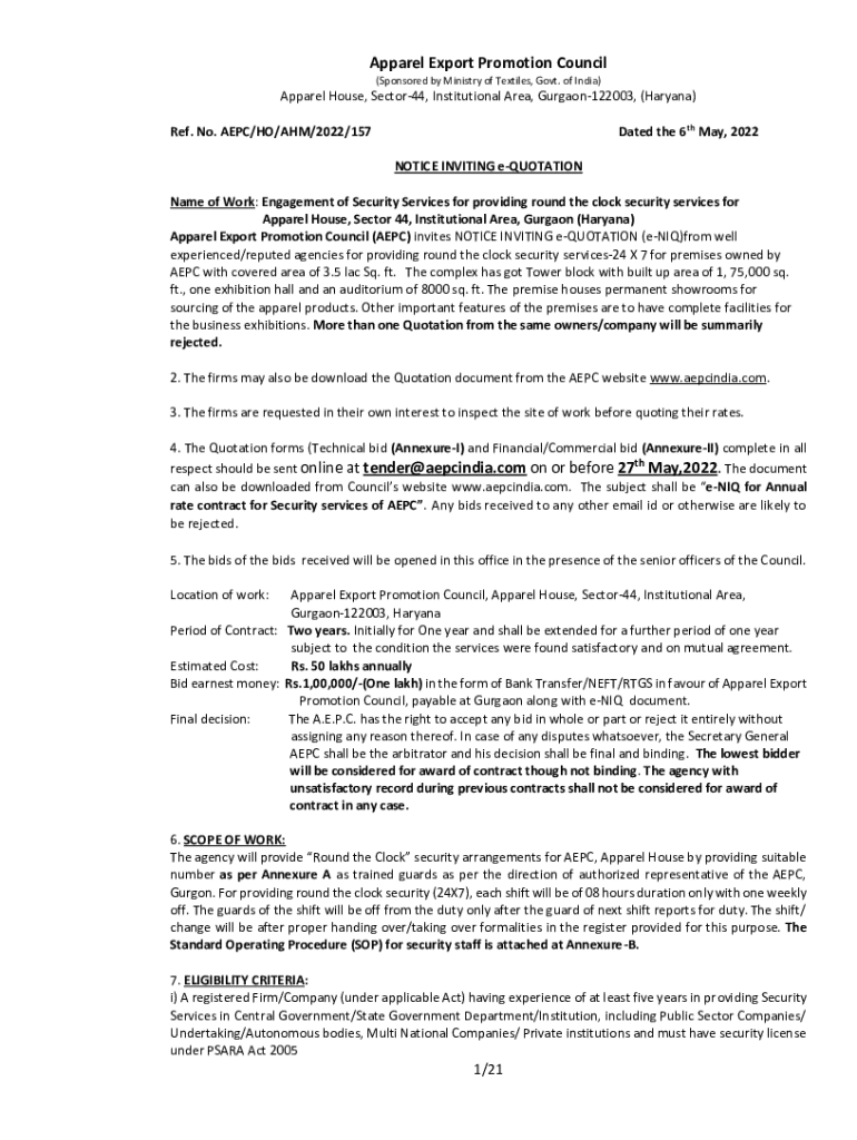 How to fill out notice inviting e-quotations e-niq