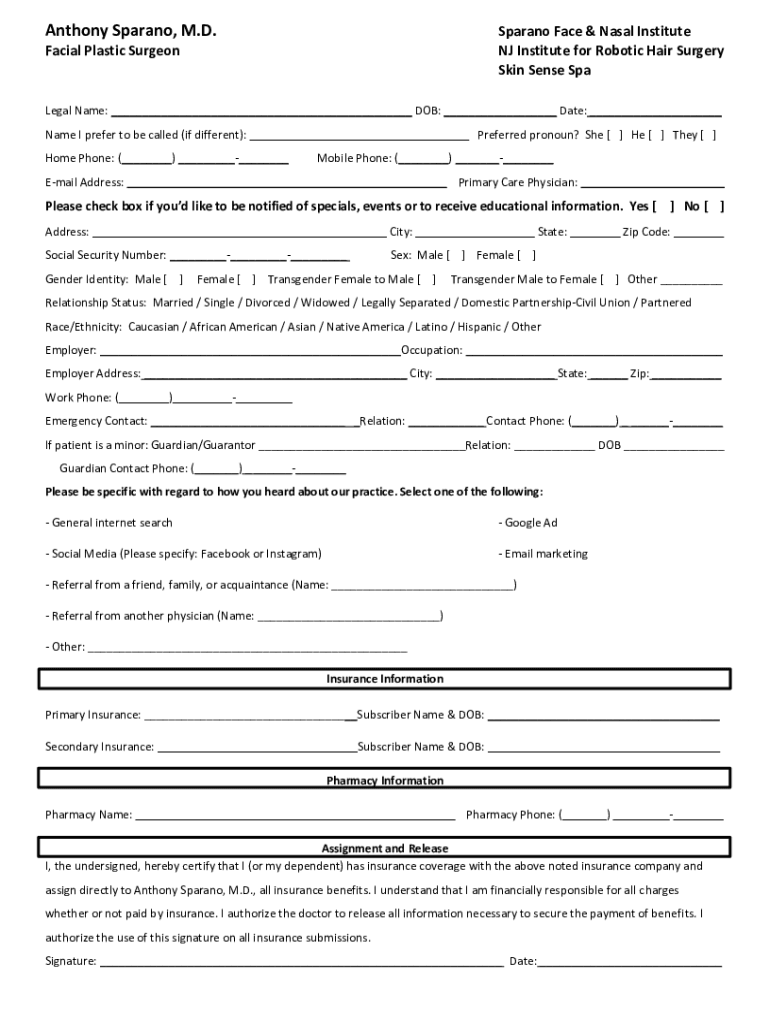 Patients who need to provide their personal and medical information to Anthony Sparano MD.