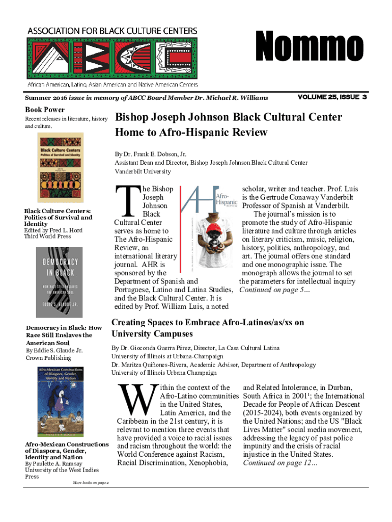 Summer 2016 issue in memory of ABCs Board Member Dr. Michael R. Williamson Power Recent releases in literature, history and culture. VOLUME 25, ISSUE 3Bishop Joseph Johnson Black Cultural Center Home