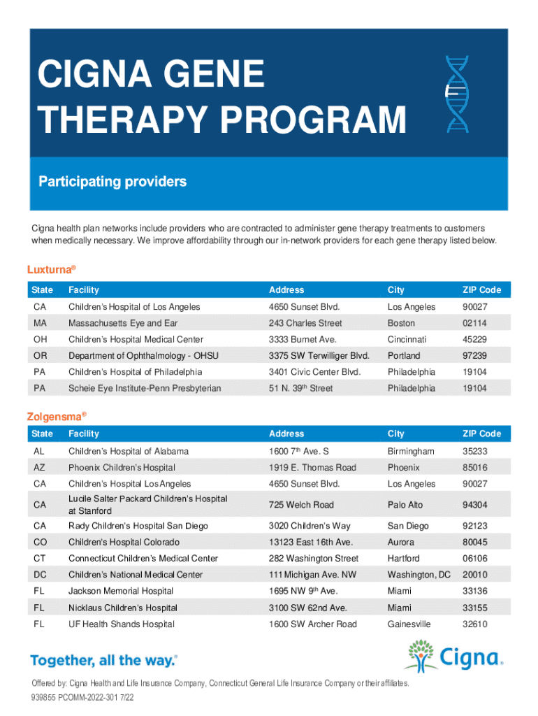 CHINA GENE THERAPY PROGRAM Cagney health plan networks include providers who are contracted to administer gene therapy treatments to customers when medically necessary. We improve affordability through