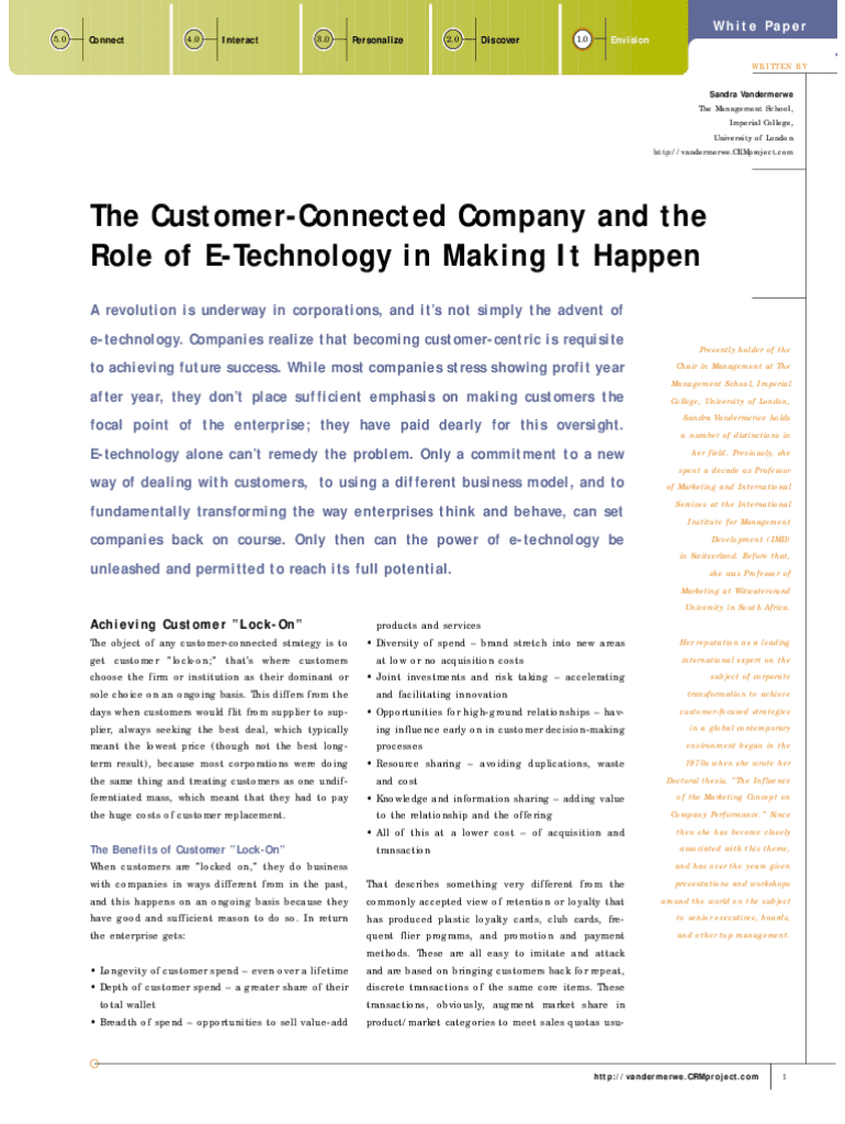 W h i t e Pa p e r 5.0Connect4.0Interact3.0Personalize2.0Discover1.0Envision WRITTEN BY Sandra Vandermerwe The Management School, Imperial College, University of London http://vandermerwe.CRMproject.comThe