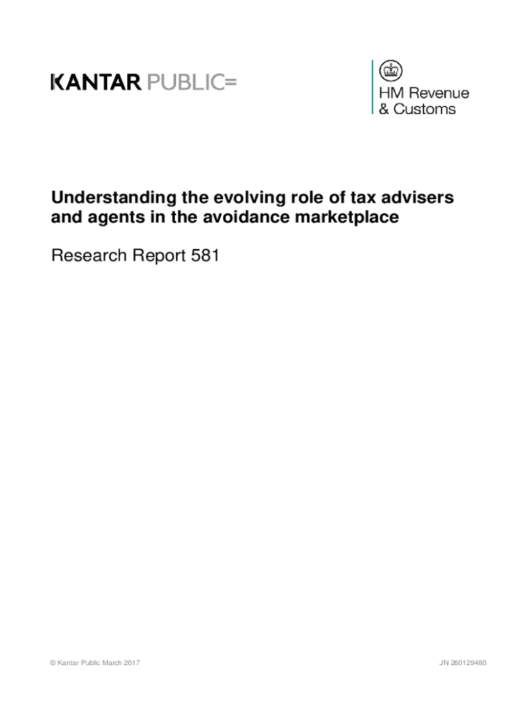 Understanding the evolving role of tax advisers and agents in the avoidance marketplace Research Report 581 Kan tar Public March 2017JN 260129480Disclaimer: The views in this report are the authors