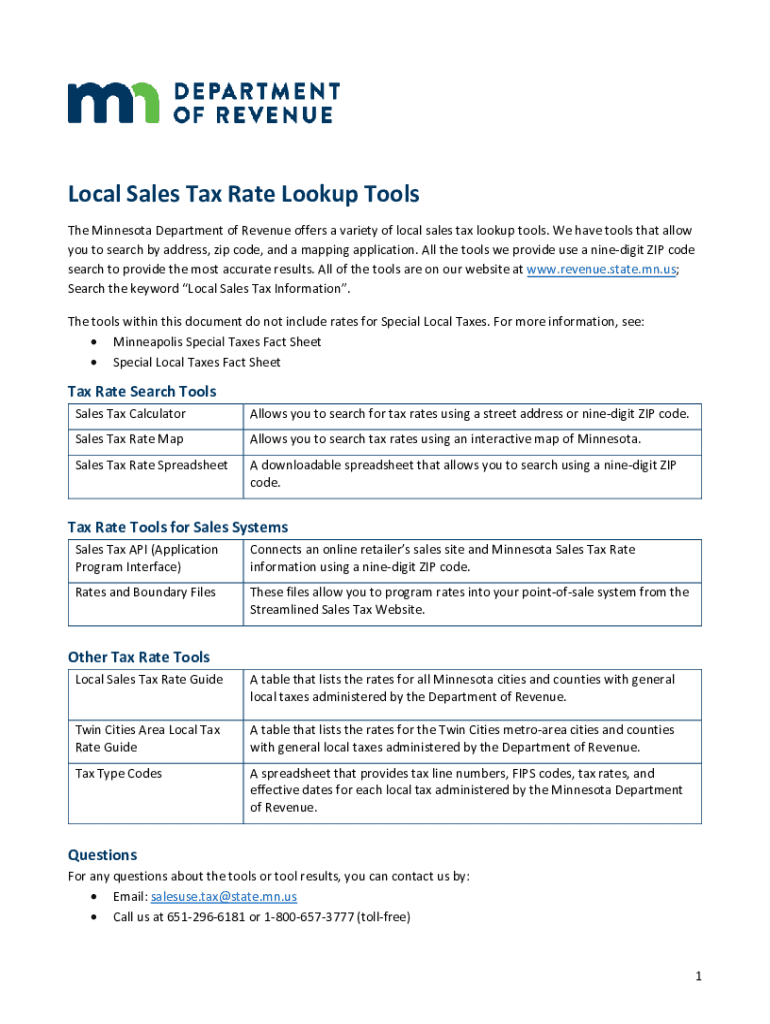 TheMinnesotaDepartmentofRevenueoffersavarietyoflocalsalestaxlookuptools. Wehavetoolsthatallow