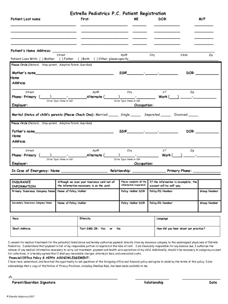 Estrella Pediatrics P.C. Patient Registration