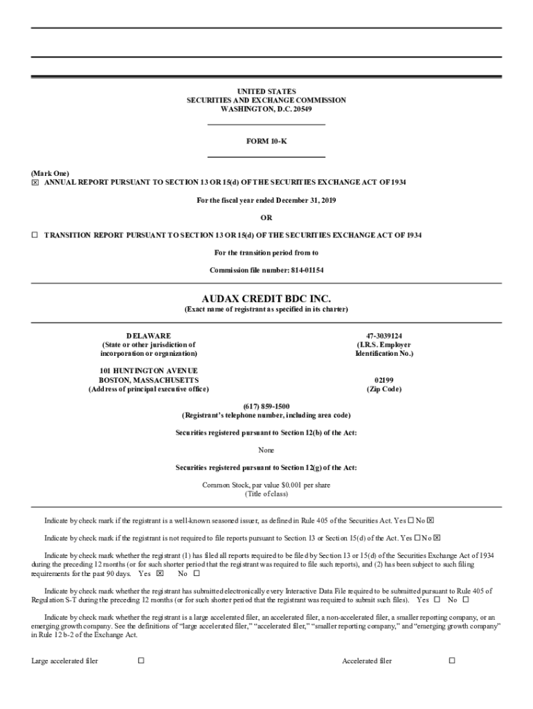 Audax Credit BDC Inc is required to file annual reports with the Securities and Exchange Commission (SEC) and provide information to investors.
