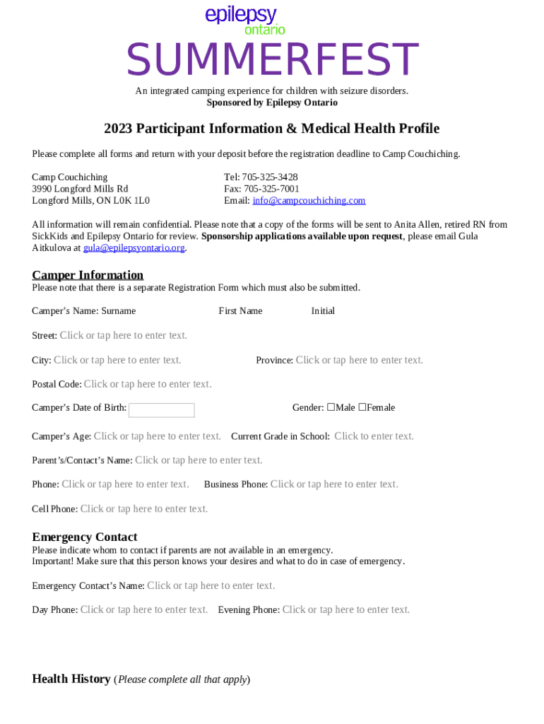 The Staying Safe at Camp With Epilepsy is a writable document that should be submitted to the specific address in order to provide specific information. It needs to be completed and signed, which may be done manually, or with a certain software e. g. PDFfiller. It allows to fill out any PDF or Word document right in the web, customize it depending on your needs and put a legally-binding e-signature. Right after completion, the user can easily send the Staying Safe at Camp With Epilepsy to the relevant person, or multiple recipients via email or fax. The template is printable as well from PDFfiller feature and options proposed for printing out adjustment. In both electronic and physical appearance, your form will have a clean and professional look. You may also save it as the template for further use, without creating a new blank form again. All that needed is to amend the ready form.