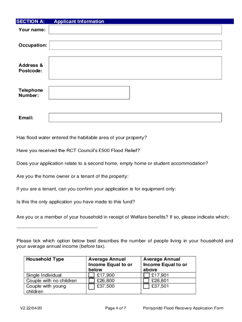 Pontypridd Flood Recovery Fund Application Form If you live in the Pontypridd Constituency and have successfully applied for Rhonda Canon TAF (ACT) Councils 500 Flood Relief Support grant then you