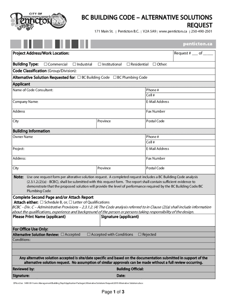 171 Main St.|Mention B.C.|V2A 5A9 | www.penticton.caProject Address/Work Location: