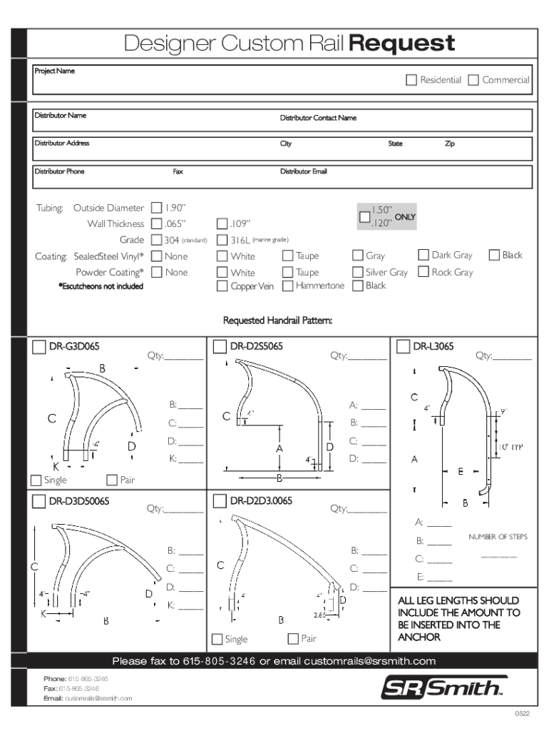 Designer Custom Rail Request Project Redistributor Contact Redistributor AddressCityDistributor Phoneying:CommercialResidentialStateZipDistributor EmailFaxOutside Diameter1.90Wall Thickness.065.109304