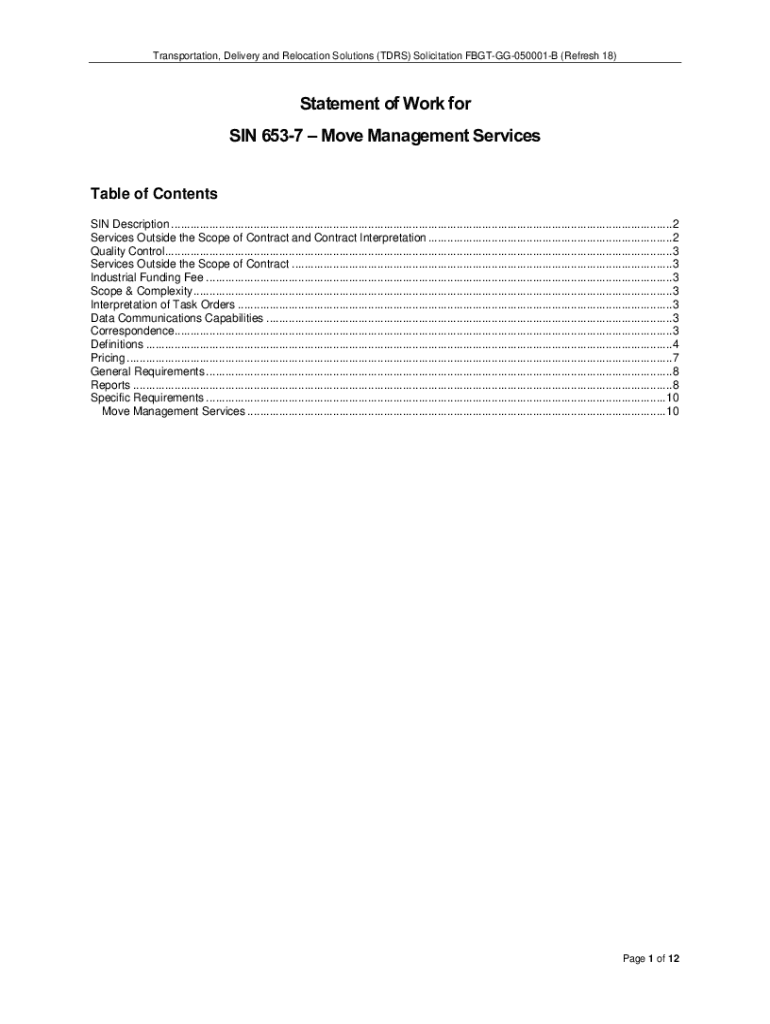 Get the free Statement of Work for SIN 653-7 Move Management Services