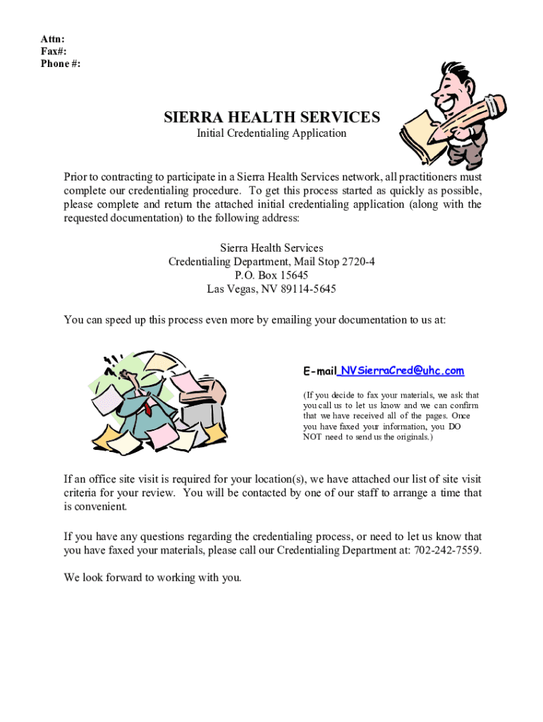 Attn: Fax#: Phone #:SIERRA HEALTH SERVICES Initial Credentialing ApplicationPrior to contracting to participate in a Sierra Health Services network, all practitioners must complete our credentialing