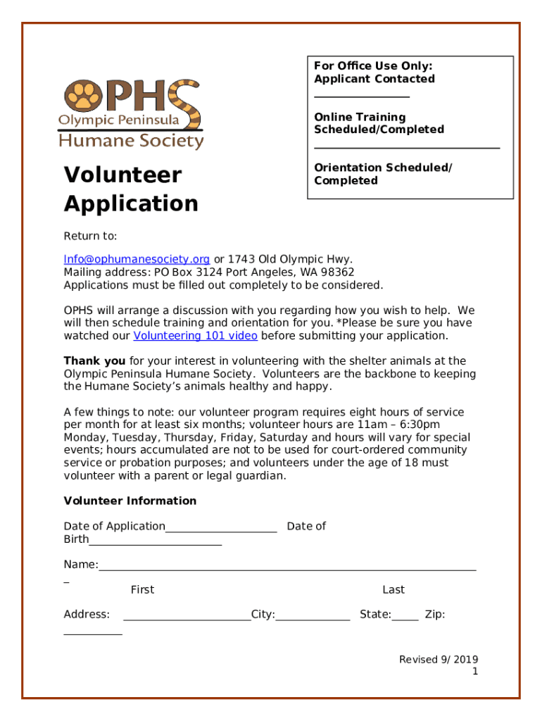 Instructions for the form Dog Adoption ApplicationOlympic Peninsula Humane Society