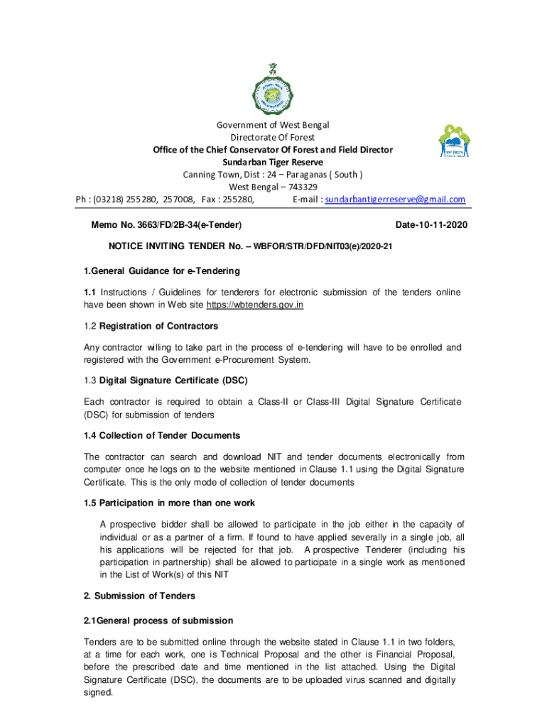 Government of West Bengal Directorate Of Forest Office of the Chief Conservator Of Forest and Field Director Suburban Tiger Reserve Canning Town, Dist : 24 Paragons (South) West Bengal 743329 pH :