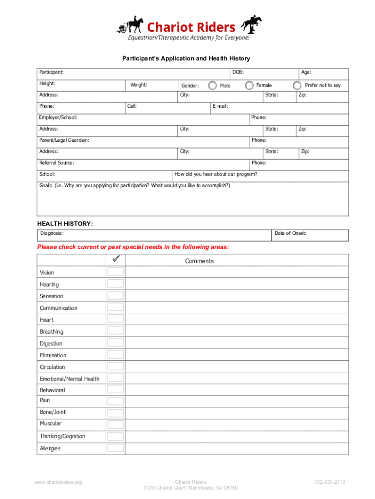 Dear Prospective Participant: Thank you for your interest in riding with Chariot Riders. The first step toward enrolling, is to complete the fillable forms below, print, sign, date and return them