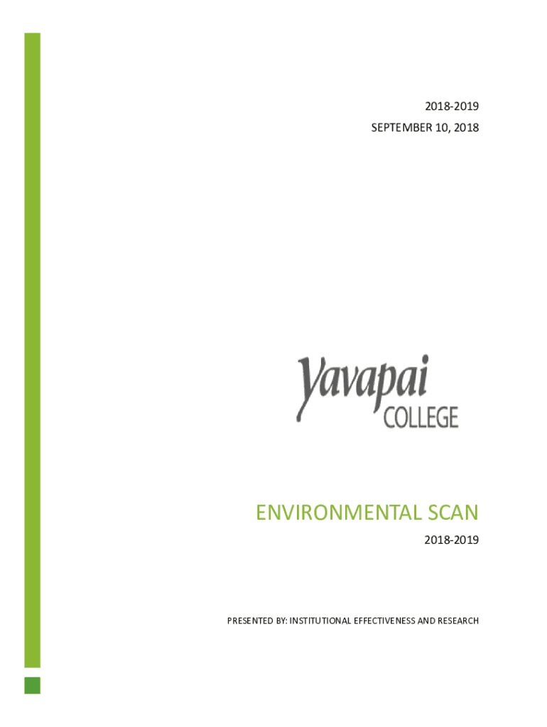 20182019 SEPTEMBER10,2018ENVIRONMENTALSCAN 20182019PRESENTEDBY:INSTITUTIONALEFFECTIVENESSANDRESEARCH EnvironmentalScan20182019TABLEOFCONTENTS Exec ve Summary.....................................................................................................................................2