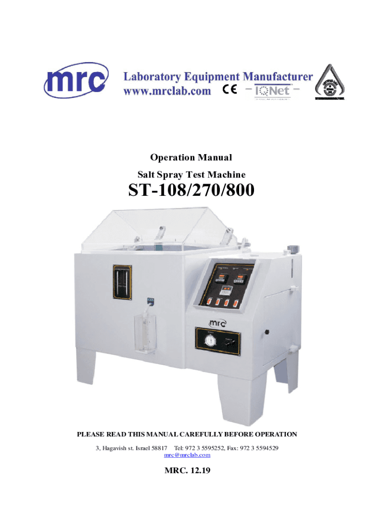 Get the free Operation Manual Salt Spray Test Machine - ST-108/270/800