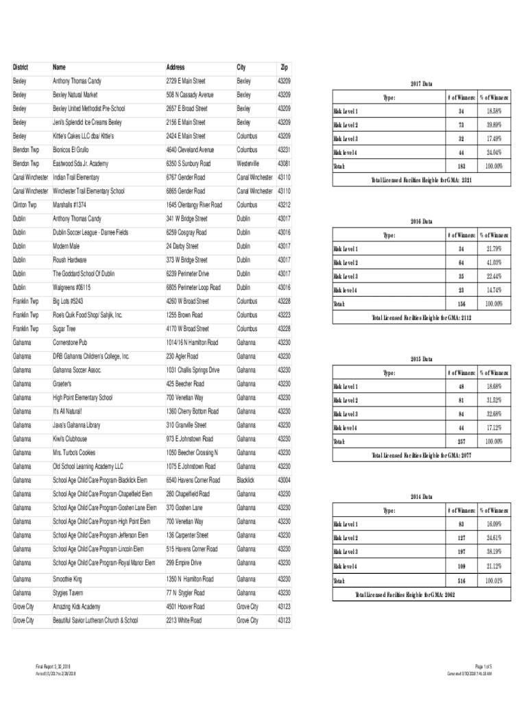 DistrictNameAddressCityBexleyAnthony Thomas Candy2729 E Main StreetBexley43209BexleyBexley Natural Market508 N Cassady AvenueBexley43209# of Winners:% of Winners:BexleyBexley United Methodist PreSchool2657