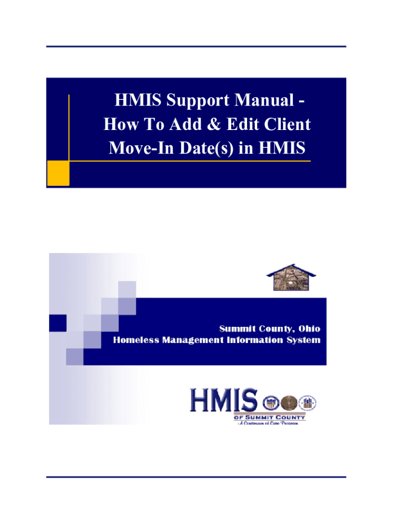 HIS Support Manual How To Add & Edit Client Move In Date(s) in SHOW TO ADD AND EDIT CLIENT MOVE IN DATES IN HIS Please note that the instructions in this manual assume the following: The Client has