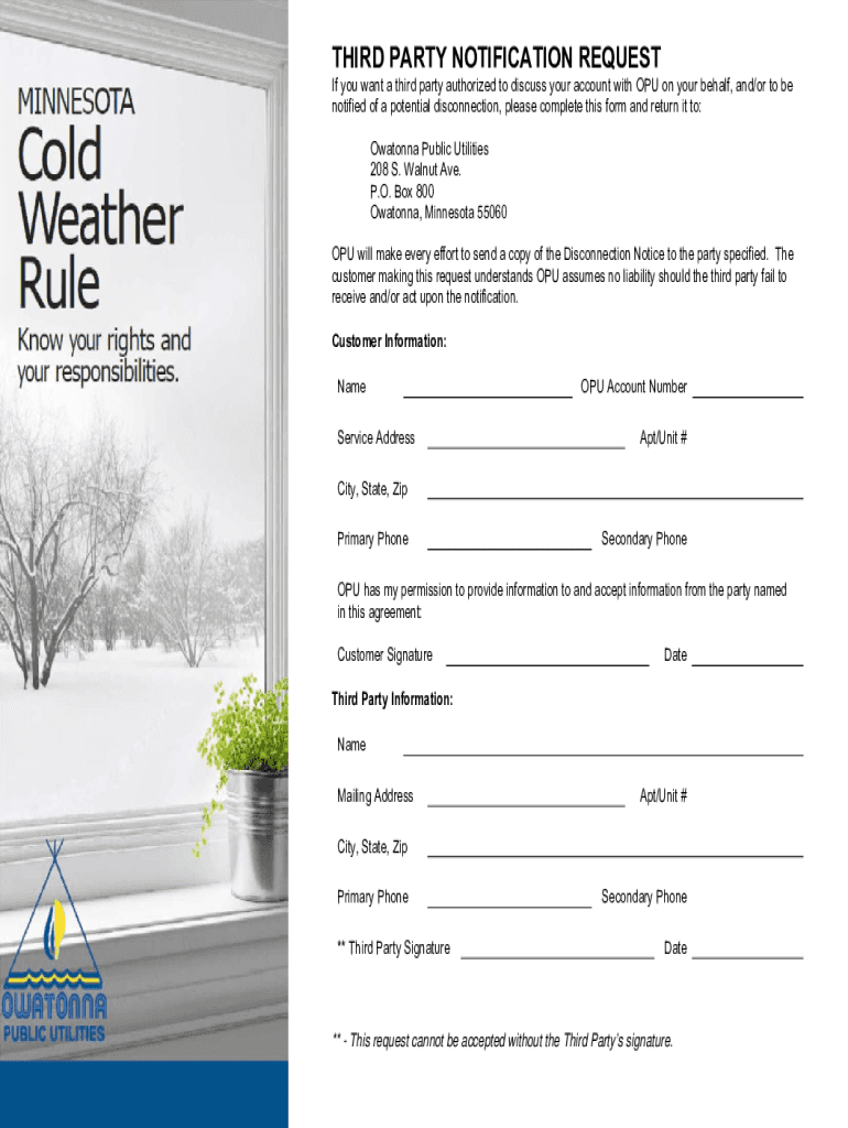 THIRD PARTY NOTIFICATION REQUEST If you want a third party authorized to discuss your account with CPU on your behalf, and/or to be notified of a potential disconnection, please complete this form