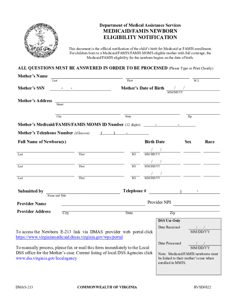 How to fill out newborn-eligibility-notification-formpdf - virginia medicaid
