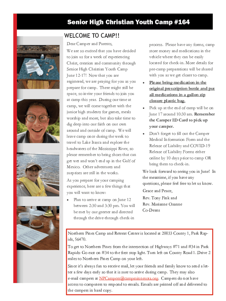 Senior High Christian Youth Camp #164 WELCOME TO CAMP!! Dear Camper and Parents, We are so excited that you have decided to join us for a week of experiencing Christ, creation and community through