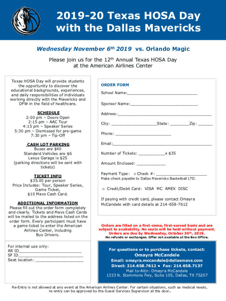 201920 Texas HOST Day with the Dallas Mavericks Wednesday, November 6th 2019 vs. Orlando Magic Please join us for the 12th Annual Texas HOST Day at the American Airlines Center Texas HOST Day will