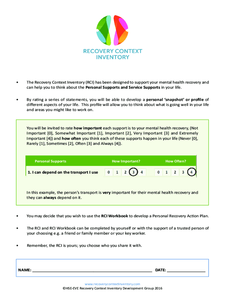 The Recovery Context Inventory (RCI) has been designed to support your mental health recovery and can help you to think about the Personal Supports and Service Supports in your life. By rating a series