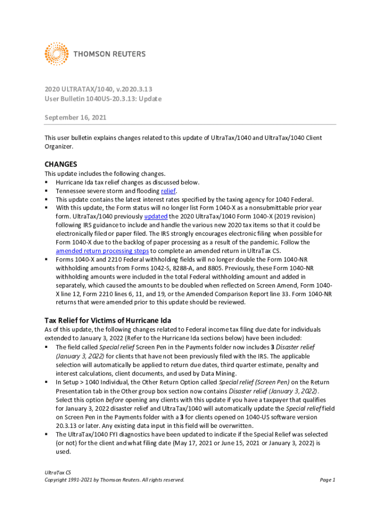 2020 ULTRAPAR/1040, v.2020.3.13 User Bulletin 1040US20.3.13: Update September 16, 2021, This user bulletin explains changes related to this update of Ultrapar/1040 and Ultrapar/1040 Client Organizer.