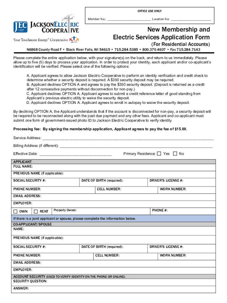 New Construction Guide.jackelec.com 715.284.5385 | 800.370.4607 Outage Reporting: 855.222.3275Jackson Electric Cooperative is an equal opportunity provider and employer. NEW SERVICE CHECKLIST Jackson