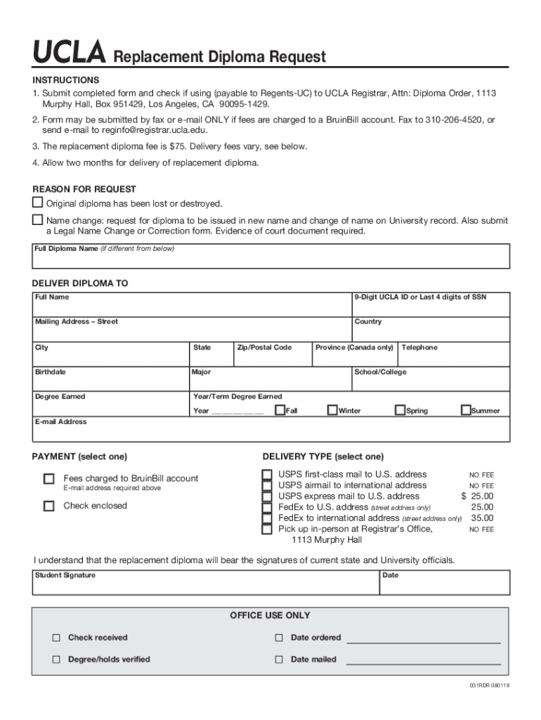 Get the free Diploma Mail Request - UCLA Registrar's Office - registrar ucla