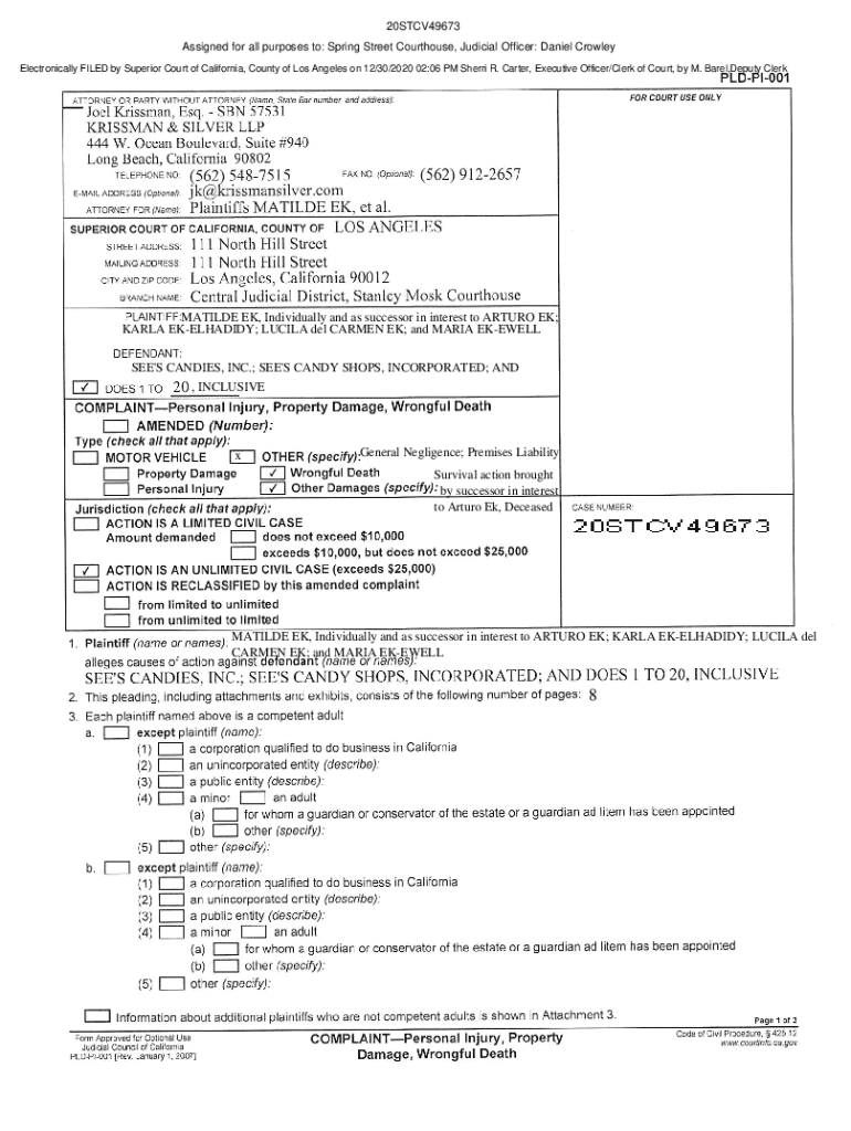 20STCV49673 Assigned for all purposes to: Spring Street Courthouse, Judicial Officer: Daniel Crowley Electronically FILED by Superior Court of California, County of Los Angeles on 12/30/2020 02:06
