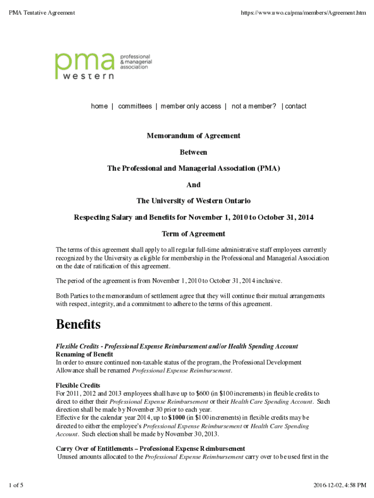 PMA Tentative Agreementhttps://www.uwo.ca/pma/members/Agreement.htmhome | committees | member only access | not a member? | contactMemorandum of Agreement Between The Professional and Managerial Association