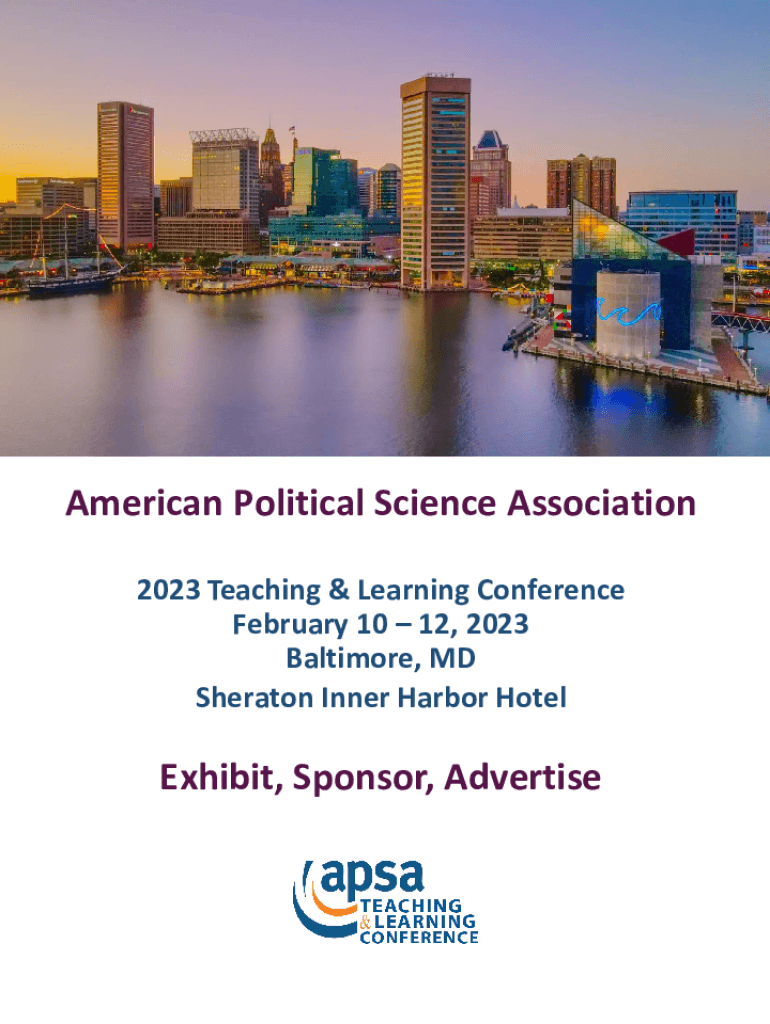 American Political Science Association 2023 Teaching & Learning Conference February 10 12, 2023 Baltimore, MD Sheraton Inner Harbor HotelExhibit, Sponsor, AdvertiseAPSAs Teaching and Learning Conference