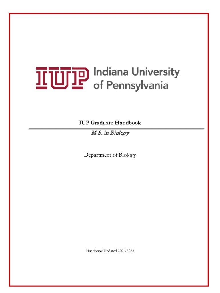 UP Graduate from Handbook. S. in Biology Department of BiologyHandbook Updated 20212022M. S. in Biology, Department of Biology | Indiana University of Pennsylvania. S. in Biology Department of Biology