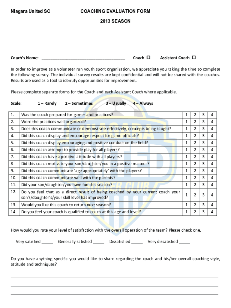 Get the free Niagara United SC COACHING EVALUATION FORM 2013 ...