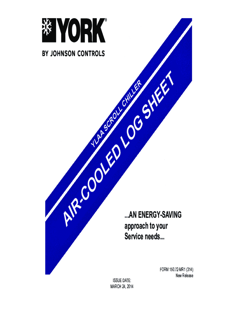 RE LL AAL L ACRYLIC AG ONE ALL OO CRD EI H CT E...AN ENERGYSAVING approach to your Service needs...ISSUE DATE: MARCH 24, 2014FORM 150.72MR1 (314) New ReleaseMAINTENANCE REQUIREMENTS FOR YL AA CHILLERSPROCEDUREWEEKLYCheck