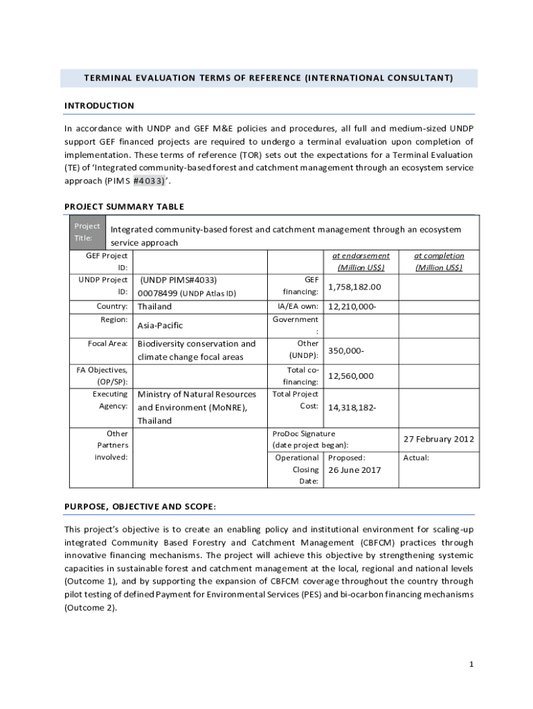 Get the free Terminal Evaluation terms of reference (international ... - info undp