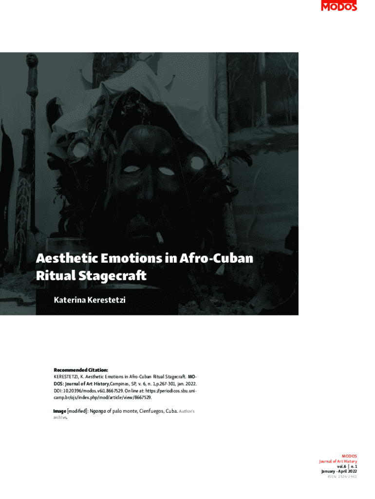 Aesthetic Emotions in Afro Cuban Ritual Stagecraft Katerina KerestetziRecommended Citation: KERESTETZI, K. Aesthetic Emotions in Afro Cuban Ritual Stagecraft. MODES: Journal of Art History, Campinas,