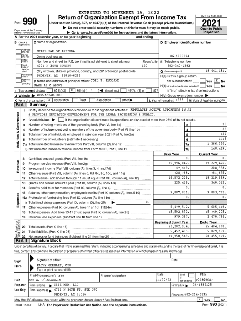 EXTENDED TO NOVEMBER 15, 2022 Form990Return of Organization Exempt From Income Tax OMB No. 15450047| Do not enter social security numbers on this form as it may be made public. Open to Public Inspection2021Under