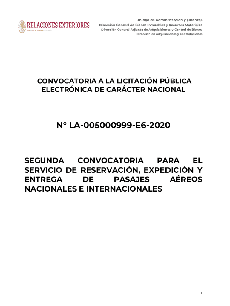 Unidad de Administracin y Finances Direction General de Bienes Mumbles y Precursor Materials Direction General Ad junta DE Acquisitions y Control de Bienes Direction de Adquisiciones y ContratacionesCONVOCATORIA