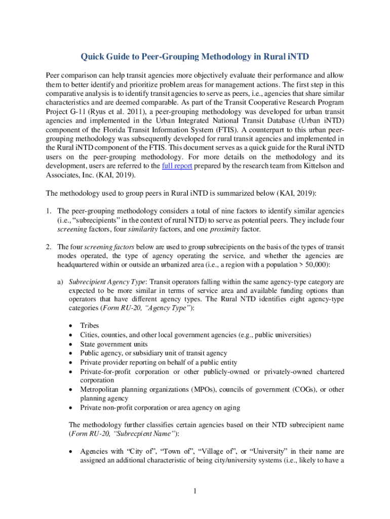 Quick Guide to Regrouping Methodology in Rural into Peer comparison can help transit agencies more objectively evaluate their performance and allow them to better identify and prioritize problem areas