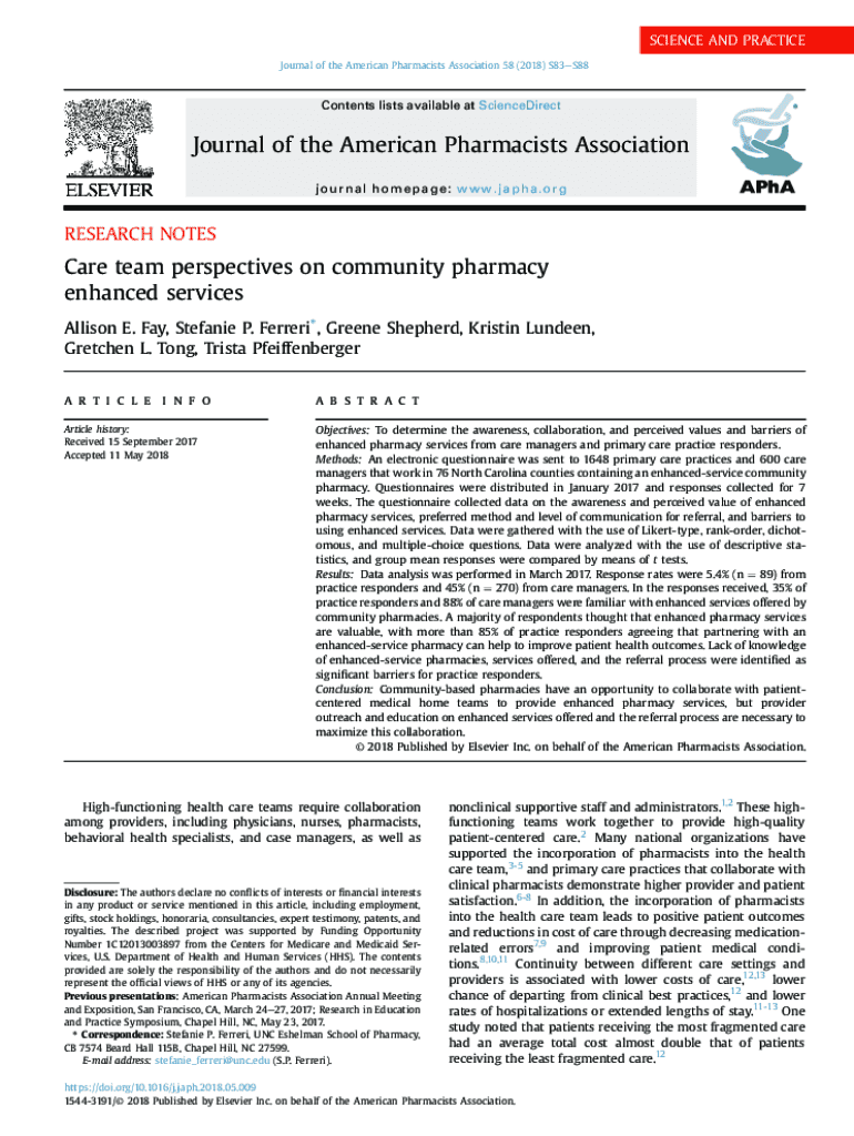 SCIENCE AND PRACTICE Journal of the American Pharmacists Association 58 (2018) S83eS88Contents lists available at ScienceDirectJournal of the American Pharmacists Association journal homepage: www.japha.orgRESEARCH
